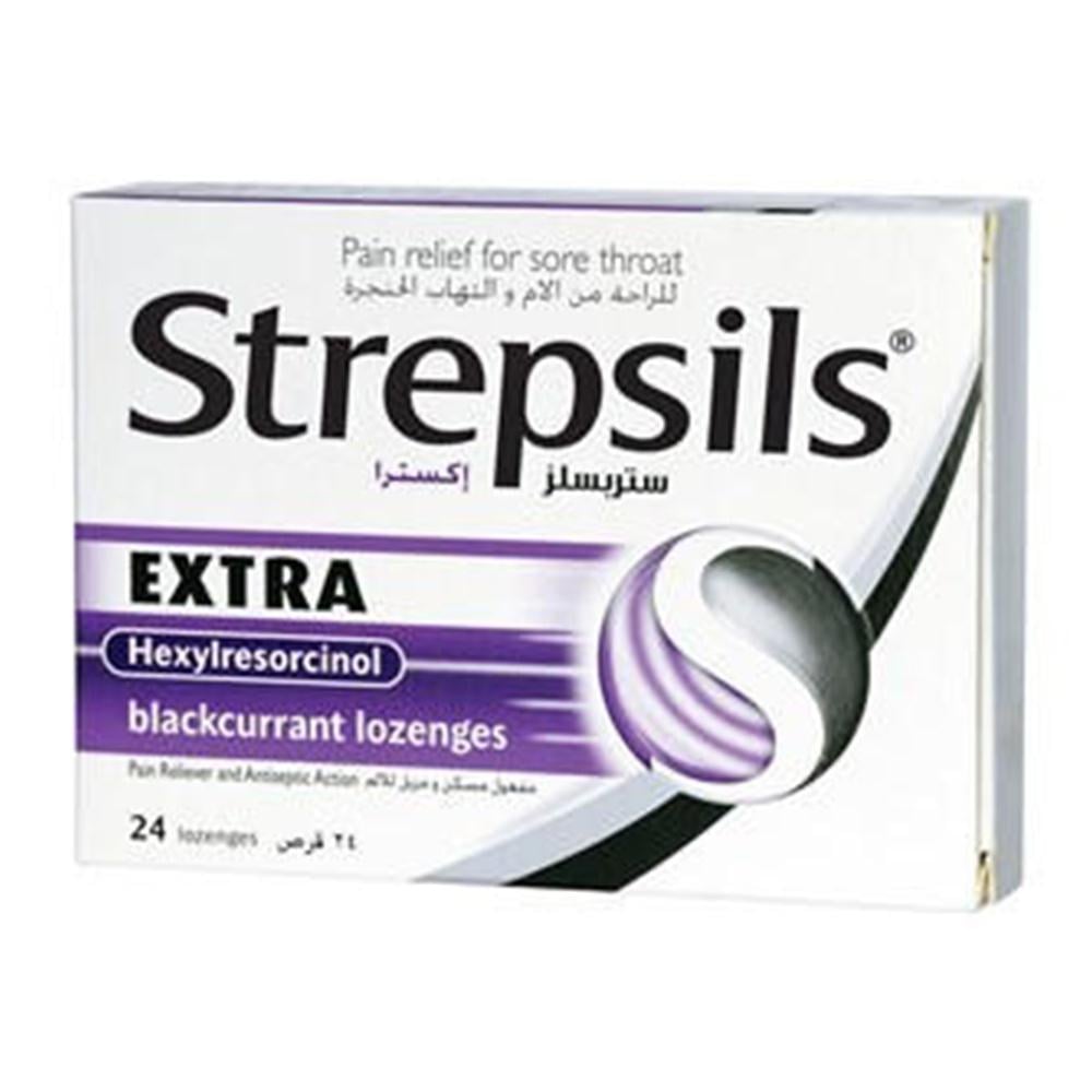 Strepsils Extra is a topical treatment designed to relieve sore throat and soothe throat irritation. Each pack contains 24 lozenges, an effective product that provides quick relief from sore throat symptoms thanks to its active ingredients that work to alleviate pain and reduce inflammation.