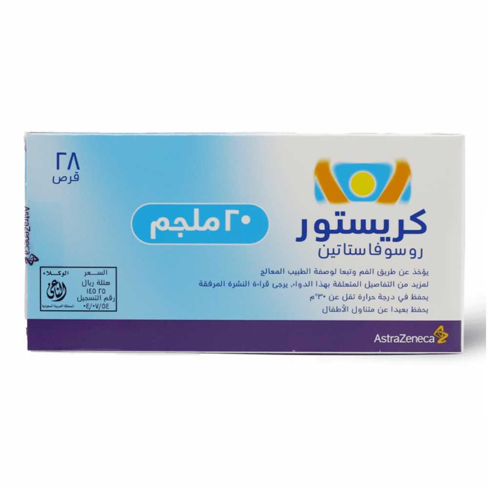 لمعرفة السعر والتفاصيل الخاصة بشراء كريستور 20 مجم 28 قرص مغلف، يمكنك زيارة متجر صيدليات طيف الماسية الطبية أو الموقع الإلكتروني taifalmasia.com.