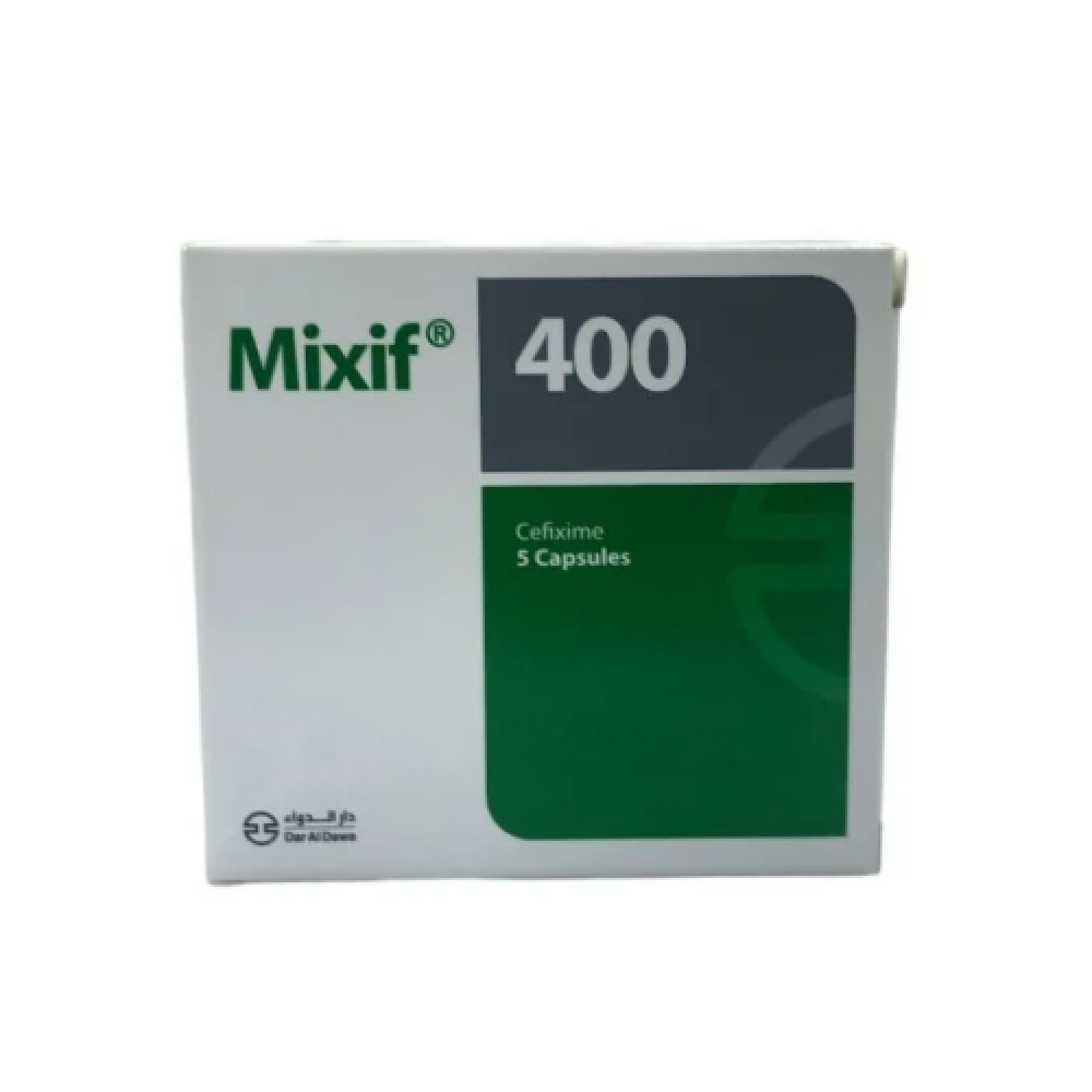 ميكسيف 400 مجم هو دواء مضاد حيوي ينتمي إلى فئة السيفالوسبورينات. يحتوي على المادة الفعالة سيفيكسيم، ويستخدم لعلاج مجموعة متنوعة من العدوى البكتيرية. يأتي في شكل كبسولات، مما يسهل تناوله ويوفر فعالية عالية في مكافحة البكتيريا المسببة للعدوى.