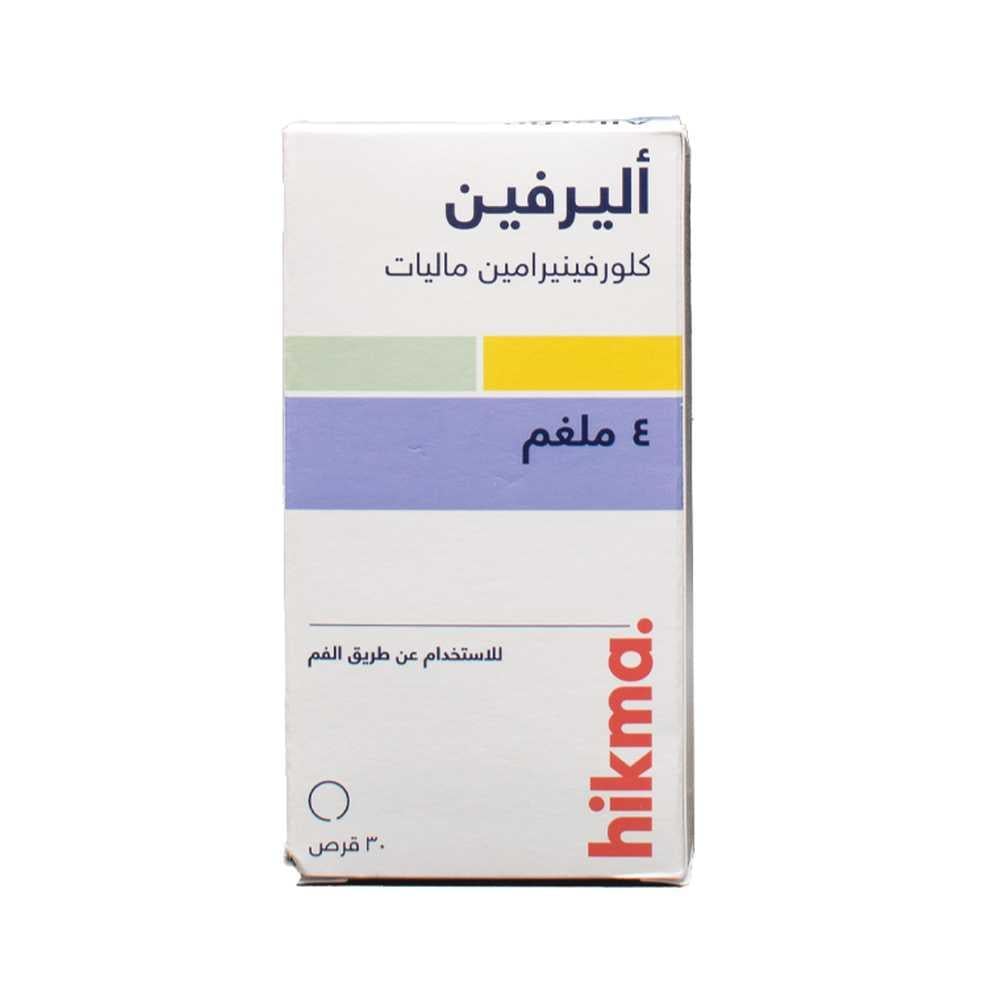 الوصف: أليرفين 4 ملغ يحتوي على مادة فعالة مضادة للحساسية تُستخدم لعلاج الأعراض الخفيفة إلى المتوسطة للحساسية والطفح الجلدي.