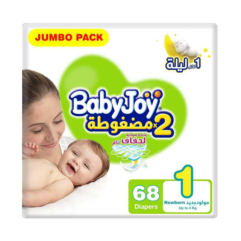 بيبي جوي عبوة ماسية مضغوطة، مقاس 1 حديث الولادة، حتى 4 كغ، عبوة عملاقة، 68 حفاض