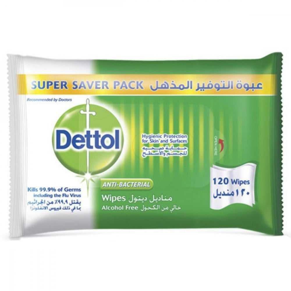 الوصف:مناديل مبللة ديتول الأصلي متعددة الاستعمالات عبوة 120 مناديل من ديتولتوفر مناديل ديتول المضادة للبكتيريا الحماية القصوى من الجراثيم للبشرة والأسطح، وهي سهلة الاستخدام في المنزل وأثناء التنقل. تركيبة Ph معتدلة ومتوازنة لا تتعارض مع حماية بشرتك الطبيعية بينما تقوم الملينات بترطيب بشرتك. المناديل مثالية للتنظيف الفوري لليدين والوجه والأسطح! إستعمليه في المنزل والسيارة والمكتب أو في العطلات..مناديل ديتول المضادة للبكتيريا مناسبة للاستخدام على كل من البشرة والأسطح.المميزات:عبوة فائقة التوفير.الحماية الصحية للبشرة والأسطح.موصى بها من قبل الأطباء.ناعمة ورطبة لتكون لطيفة على الجلد.لا يترك آثار.امنة للإستعمال على الأطفال وأماكن تناول الطعام.حماية من الجراثيم في كل مكان وكل زمان
