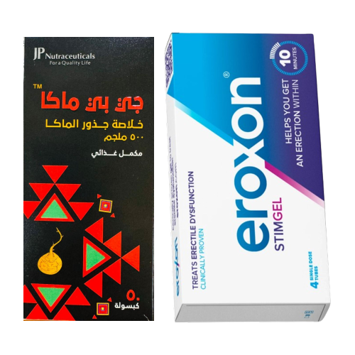 - يساعد جل إيروكسون في علاج ضعف الانتصاب بسرعة وفعالية، بينما يعزز جي بي ماكا من الرغبة الجنسية ويزيد من القدرة على التحمل.