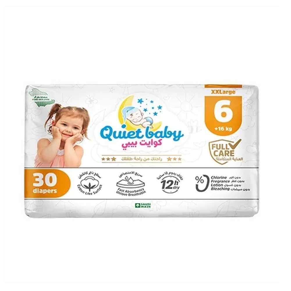 نظرة عامة: حفاضات كوايت بيبي ناعمة ولطيفة على بشرة طفلك. إنها مناسبة تمامًا حيث تضمن راحة خالية من التسرب لطفلك. اختبرت في المختبرات الألمانية بنعومة كالقطن لتزويد طفلك بلمسة ناعمة ,تحتوي هذه الحفاضات على طبقة خاصة لامتصاص السيلان وإبقائه بعيدًا وحماية بشرة طفلك الرقيقة.. حفاضات كوايت بيبي مزودة بمؤشر للبلل يتحول من الأصفر إلى الأزرق عند ملامستها للسوائل لمساعدة الامهات على معرفة الوقت المناسب للتغيير. لا عجب أن Quiet Baby هي الأفضل. اختيار واحد للأمهات!